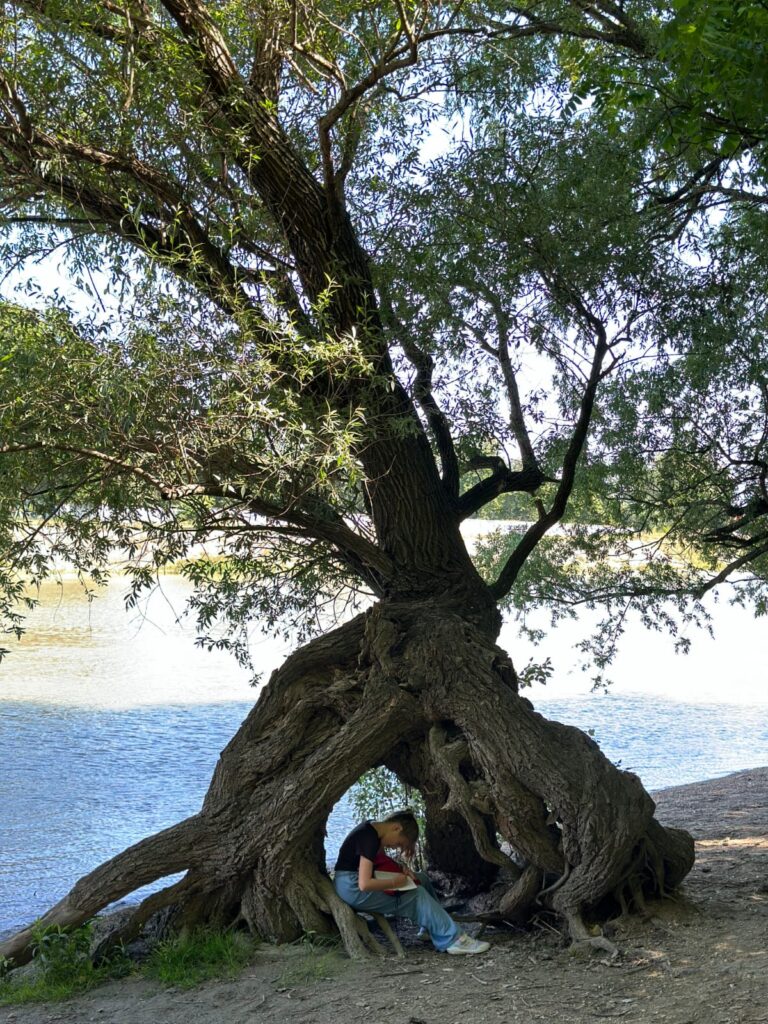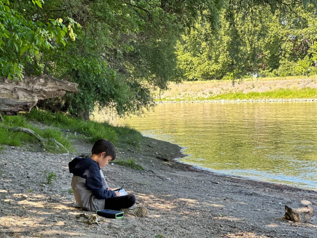Students writing in their journal while spending time in nature. Photo by Carmelo Zamora, REAL School Budapest